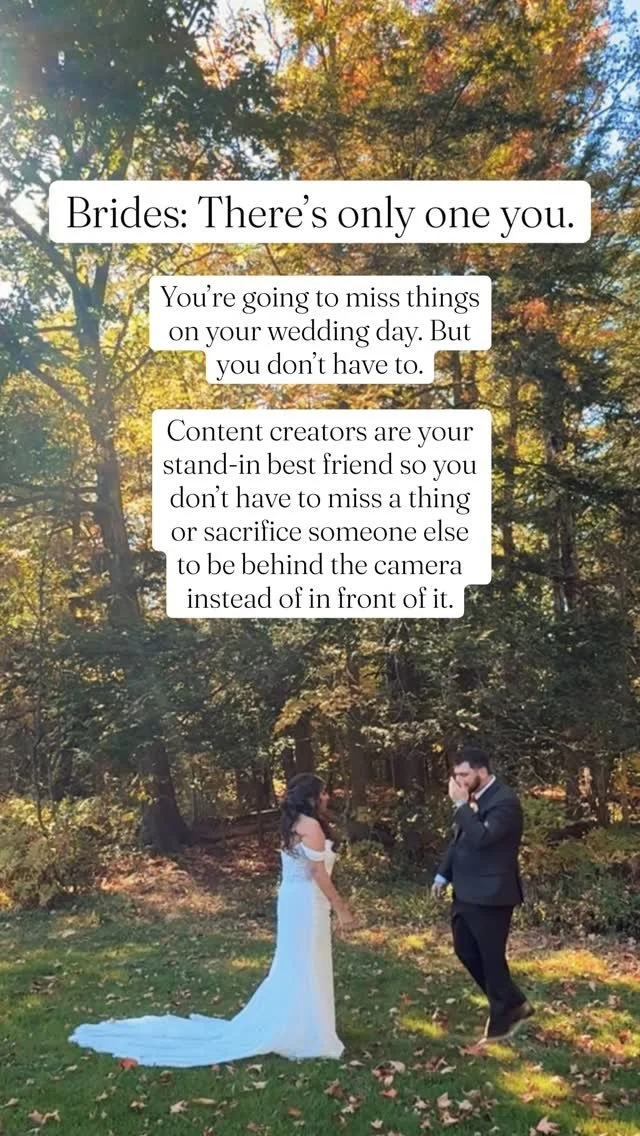 I’m a Buffalo-based wedding content creator who specializes in capturing the magic you didn’t know you’d miss. And then getting it to you super fast (like sneak peeks before the reception ends)…